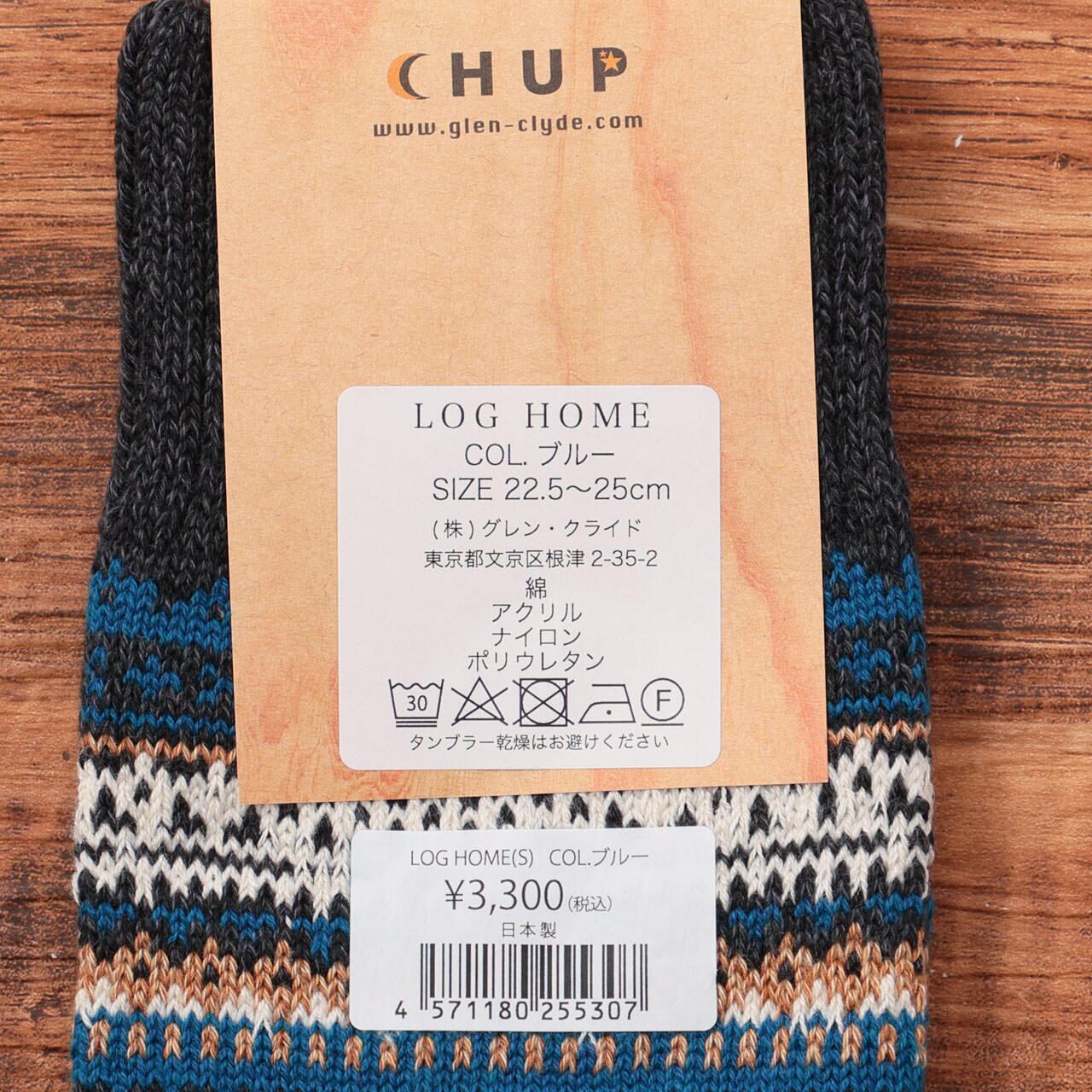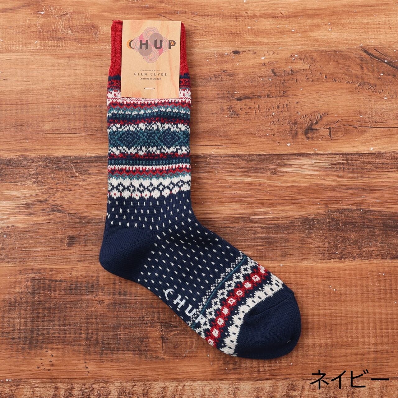 靴下 ハイソックス CHUP チュプ LOG HOME 冬物 暖かい 綿 快適 おしゃれ 柄物 民族 ギフトプレゼント GLEN CLYDE グレンクライド 日本製 ネイビー ブルー アイボリー ブラック Ll112
