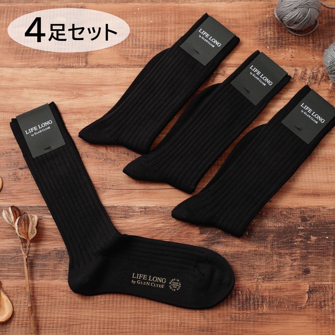 ライフロング LIFELONG 靴下 ソックス メンズ リブソックス 4足セット 永久交換保証 日本製 ブラック/ネイビー/ブラック杢 Ll015 TS-5