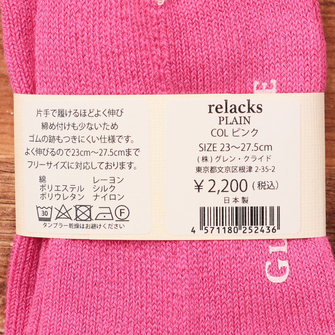 グレンクライド GLEN CLYDE relacks リラックス PLAIN プレーン 靴下 ソックス レディース メンズ ユニセックス フリーサイズ かわいい おしゃれ ピンク/イエロー/グリーン 日本製 ブランド ギフト プレゼント 23-27.5 Ll085