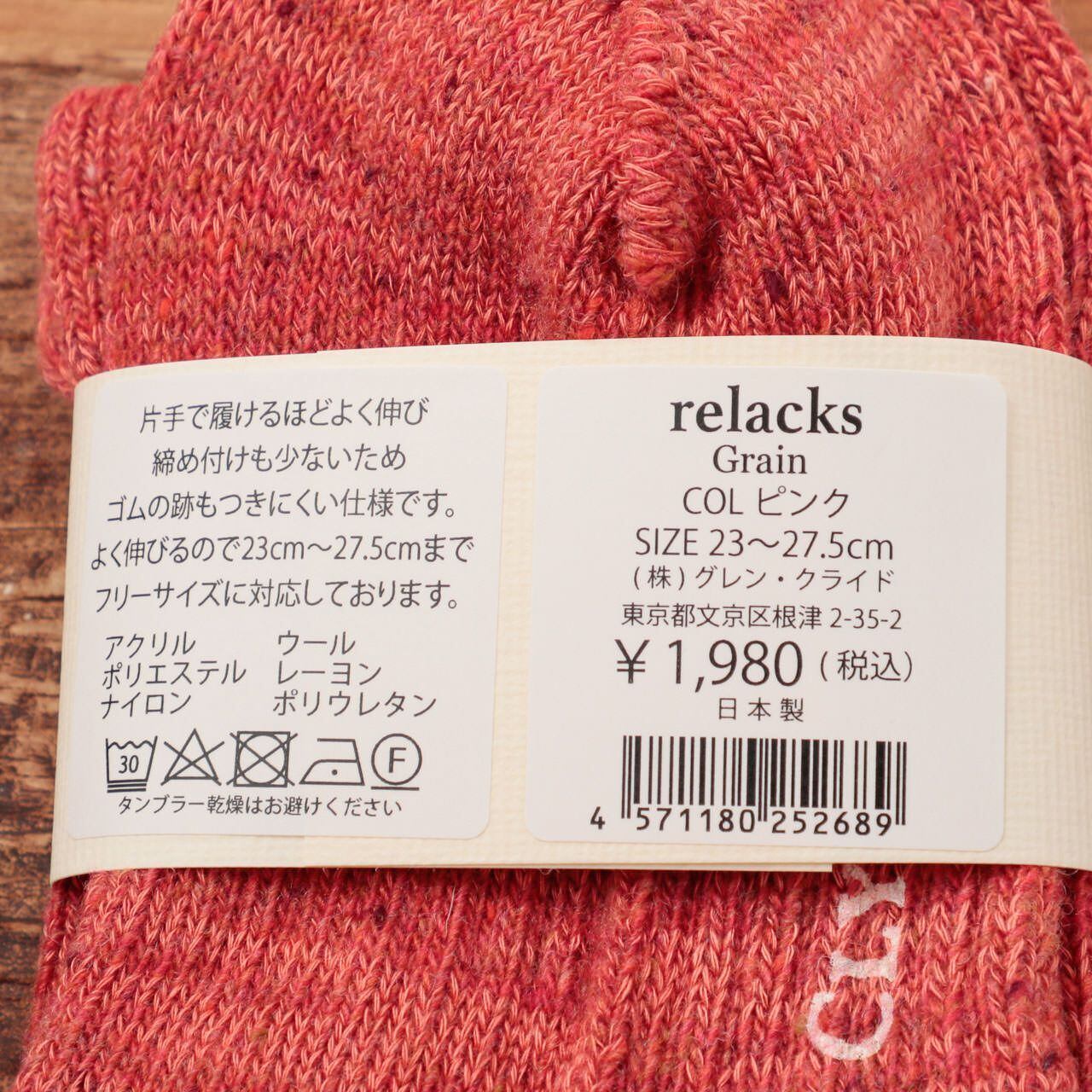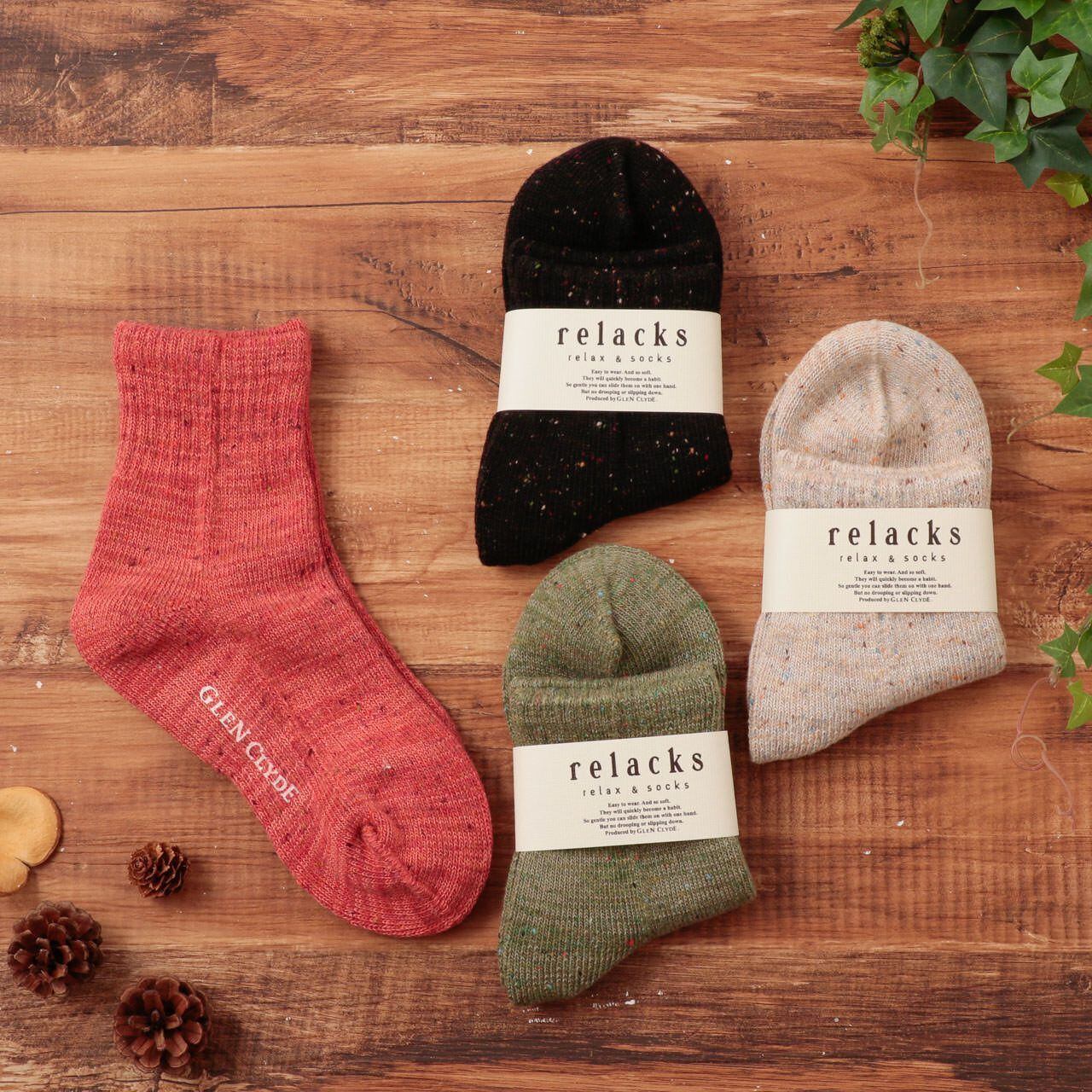 グレンクライド GLEN CLYDE relacks リラックス Grain ウール混 ショート丈 靴下 ソックス ネップヤーン レディース メンズ かわいい おしゃれ ブラック/ピンク/グリーン/ベージュ 日本製 ギフト プレゼント 23-27.5 Ll098