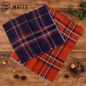 【送料無料】 ネイビー 大判 ショール レディース マフラー 青 赤 チェック ブランド リバーシブル アルパカ 暖かい 首 温める 秋冬 かわいい ギフト プレゼント オレンジ マイテ MAITE SH011 Mt009