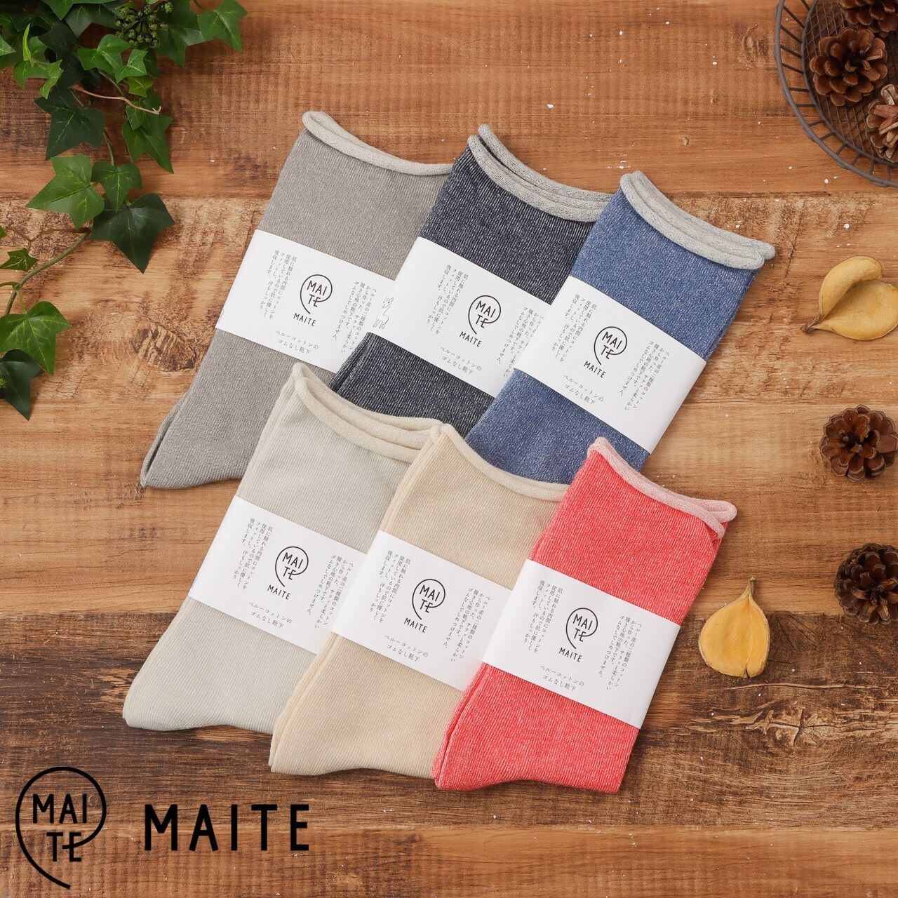 【送料無料】 MAITE マイテ ペルーコットンのゴムなし靴下 メンズ レディース 締め付けない 履き口 ゆったり シンプル おしゃれ ナチュラル 高品質 日本製 22-24 25-27 S M ペルーコットン クルー丈 全7色 Mt003 SO005