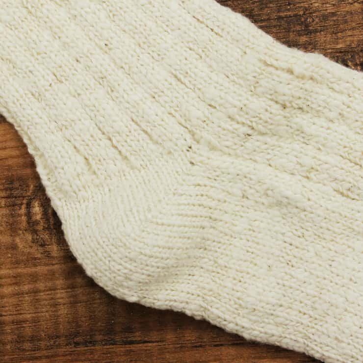 ※本製品は明治時代に日本で開発されたガラ紡績機で紡がれており、仕上がりにムラ感があり一点物に近い個性豊かな靴下を生み出します。