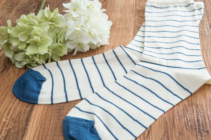 オーガニックガーデン ORGANIC GARDEN 靴下 ソックス Or007 8198-22 レディース ボーダー 夏 国産 日本製 オーガニックコットン プレゼント ギフト 青 白