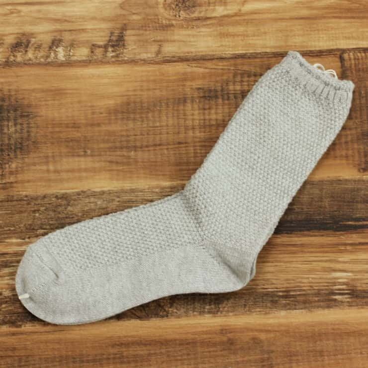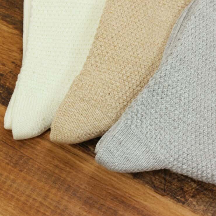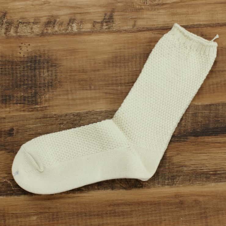 鹿の子編みは生地に凹凸があり、通気性があります。伸びが良く気持ちよく履いていただけます。