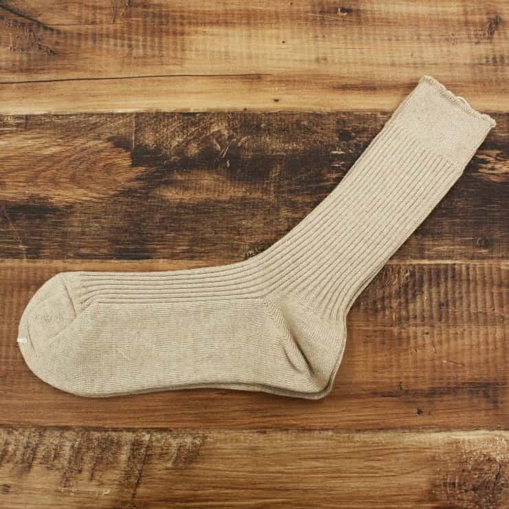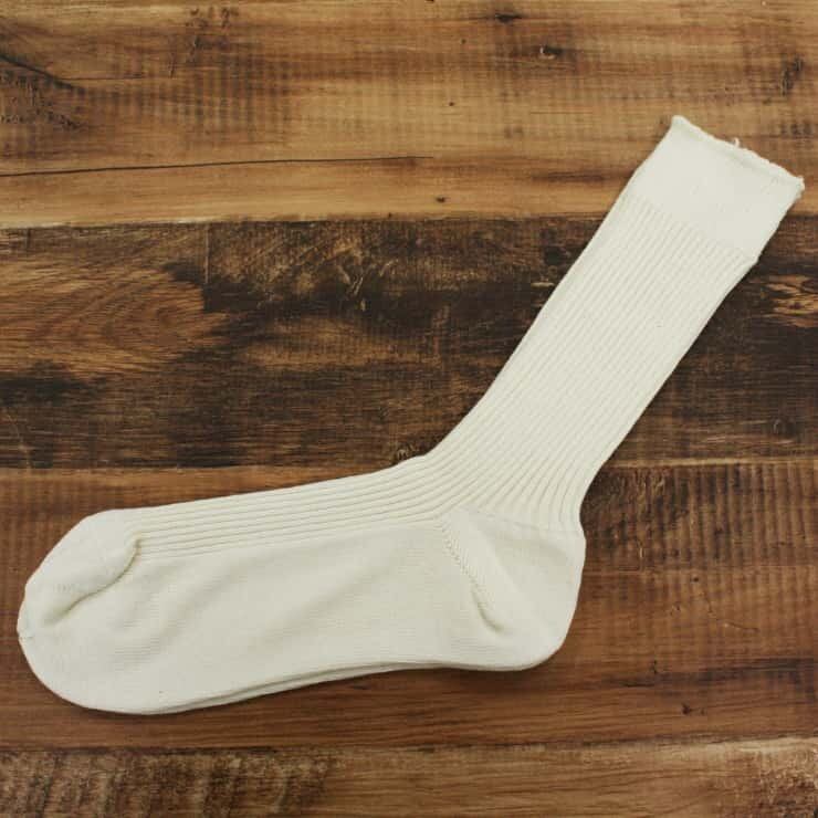 通常ソックスに入れるナイロン糸やポリウレタン糸を使用せずに綿のみで編み立てた綿100%の靴下です。