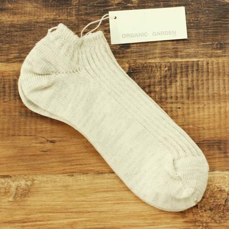 ほぼ綿に近い状態のオーガニックコットンの糸(粗糸)で編んだスニーカーソックスです。