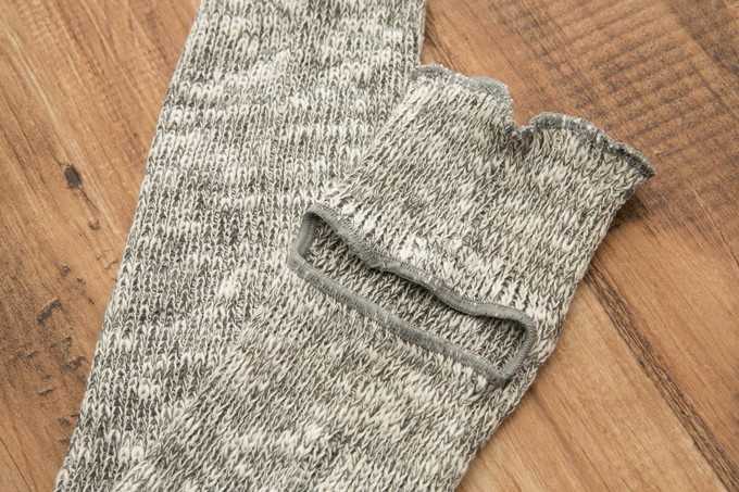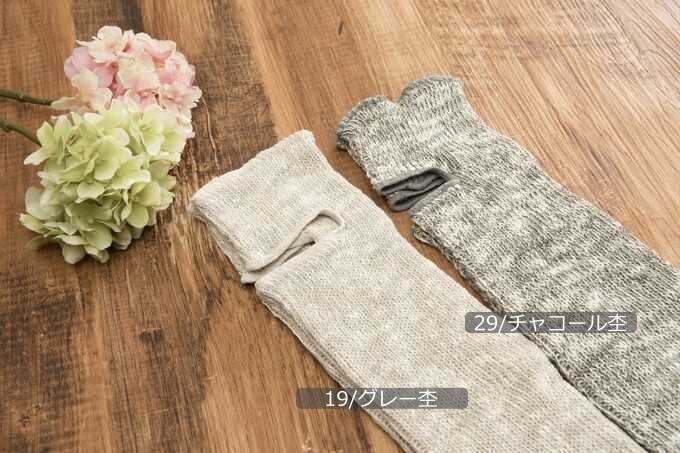 人気のかかとのないタイプをスラブ糸(ムラ感のある糸)で作りました。