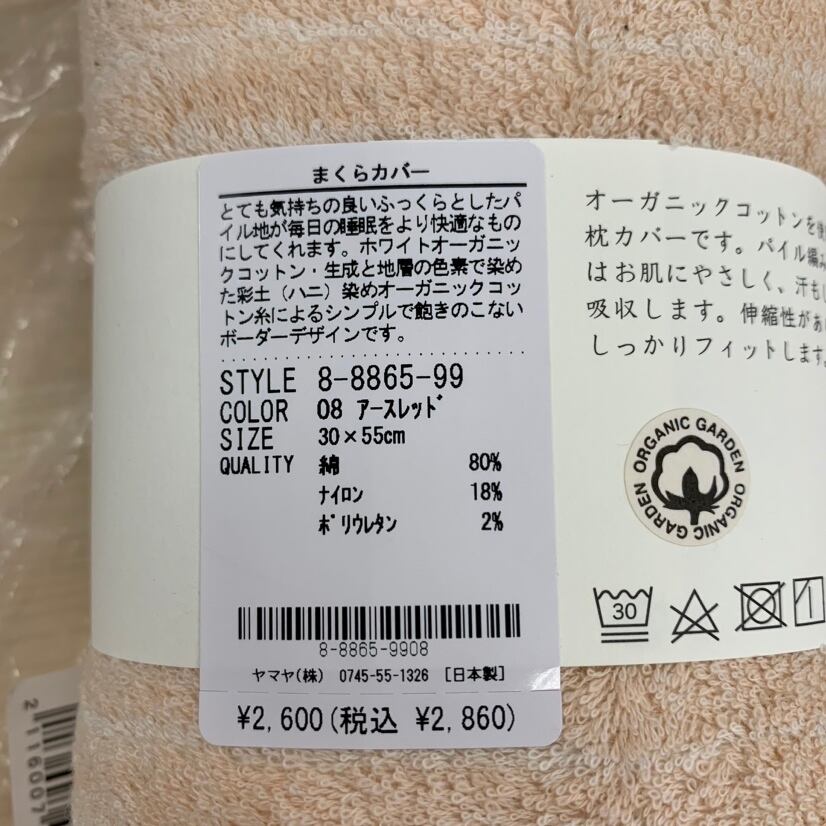 オーガニックガーデン 枕カバー まくらカバー 30×50 夏用 タオル地 パイル素材 薄手 ボーダー ストライプ 日本製 ピンク グレー 8865-99 Or069