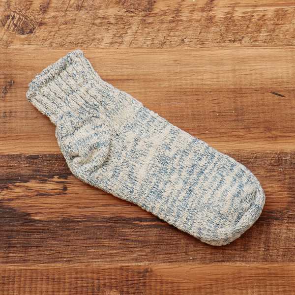 ※本製品は明治時代に日本で開発されたガラ紡績機で紡がれており、仕上がりにムラ感があり一点物に近い個性豊かな靴下を生み出します。
