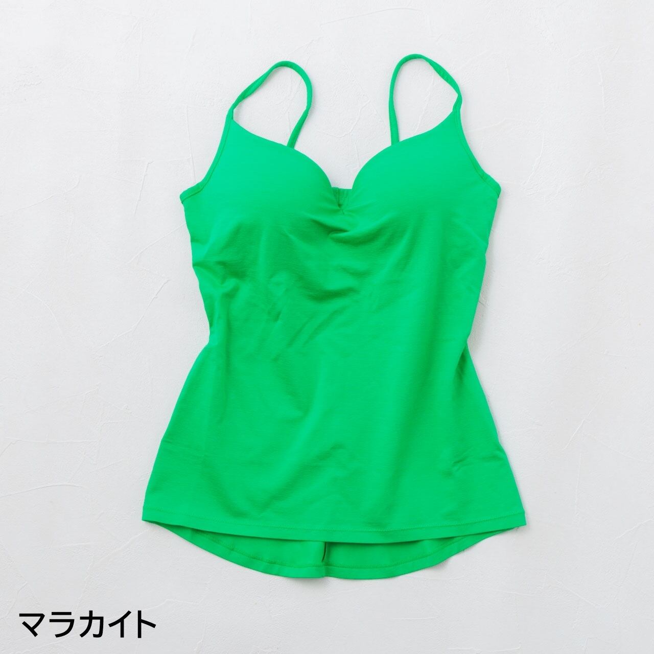 フロントカットラインが美しく、スマートですっきりとしたシルエットが魅力的なキャミソール。
