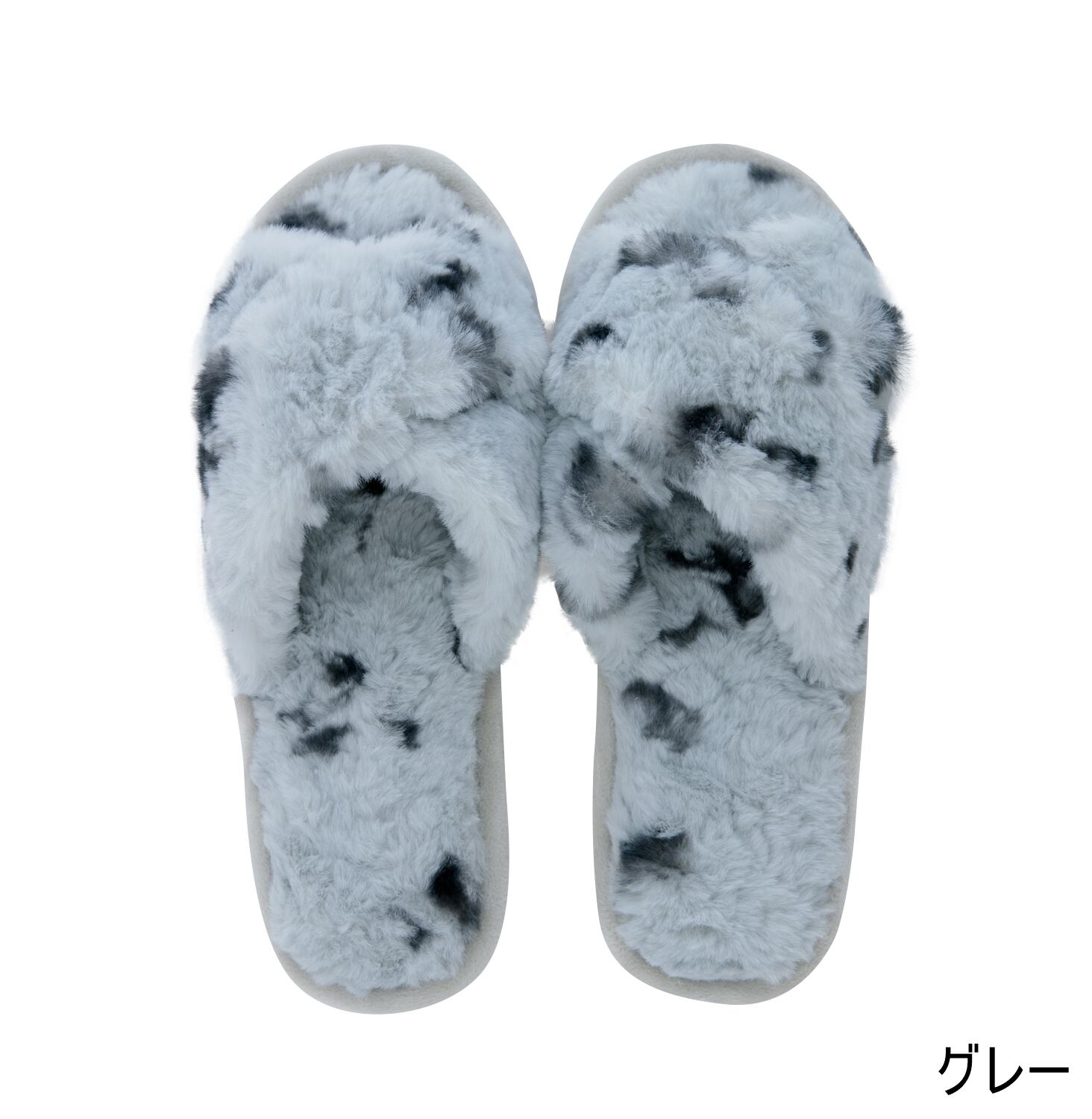 アニマル柄のファーを使用した大人かわいいクロススリッパ。