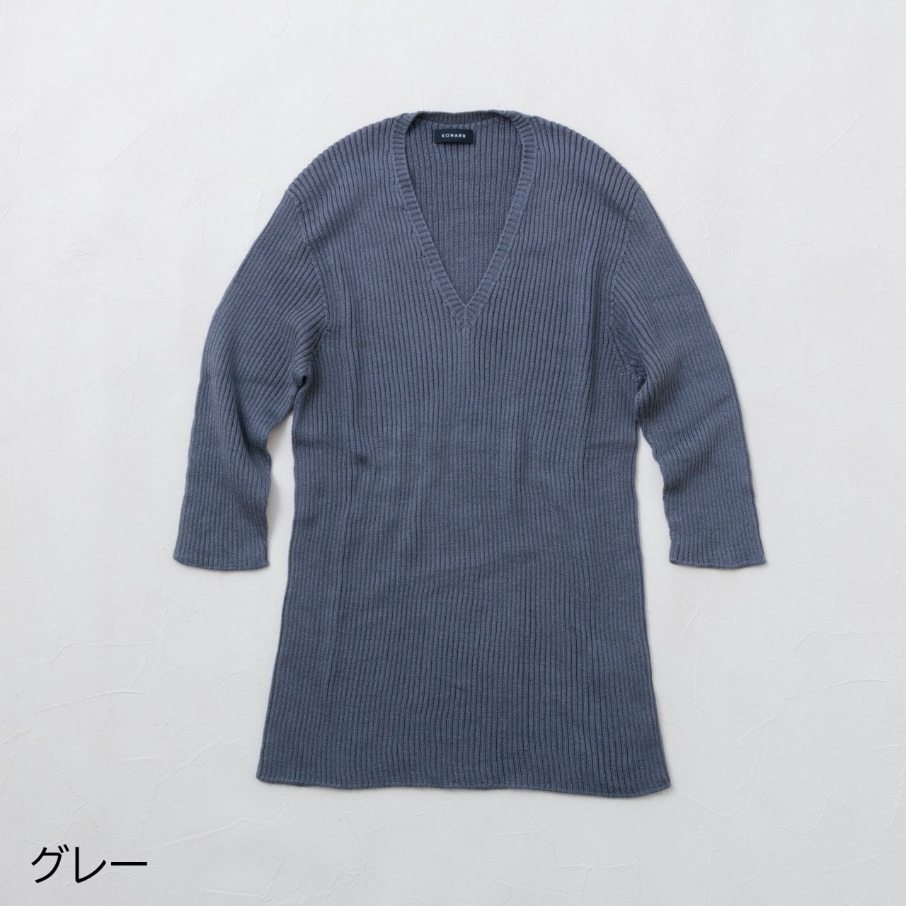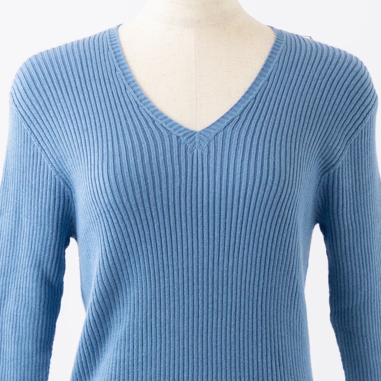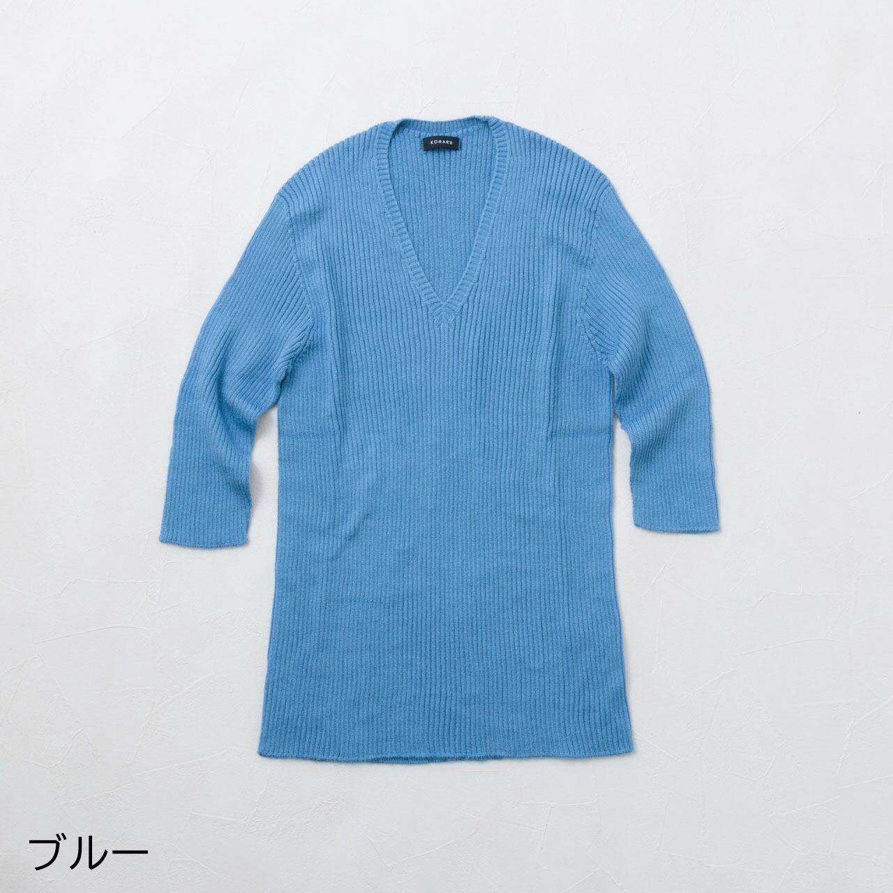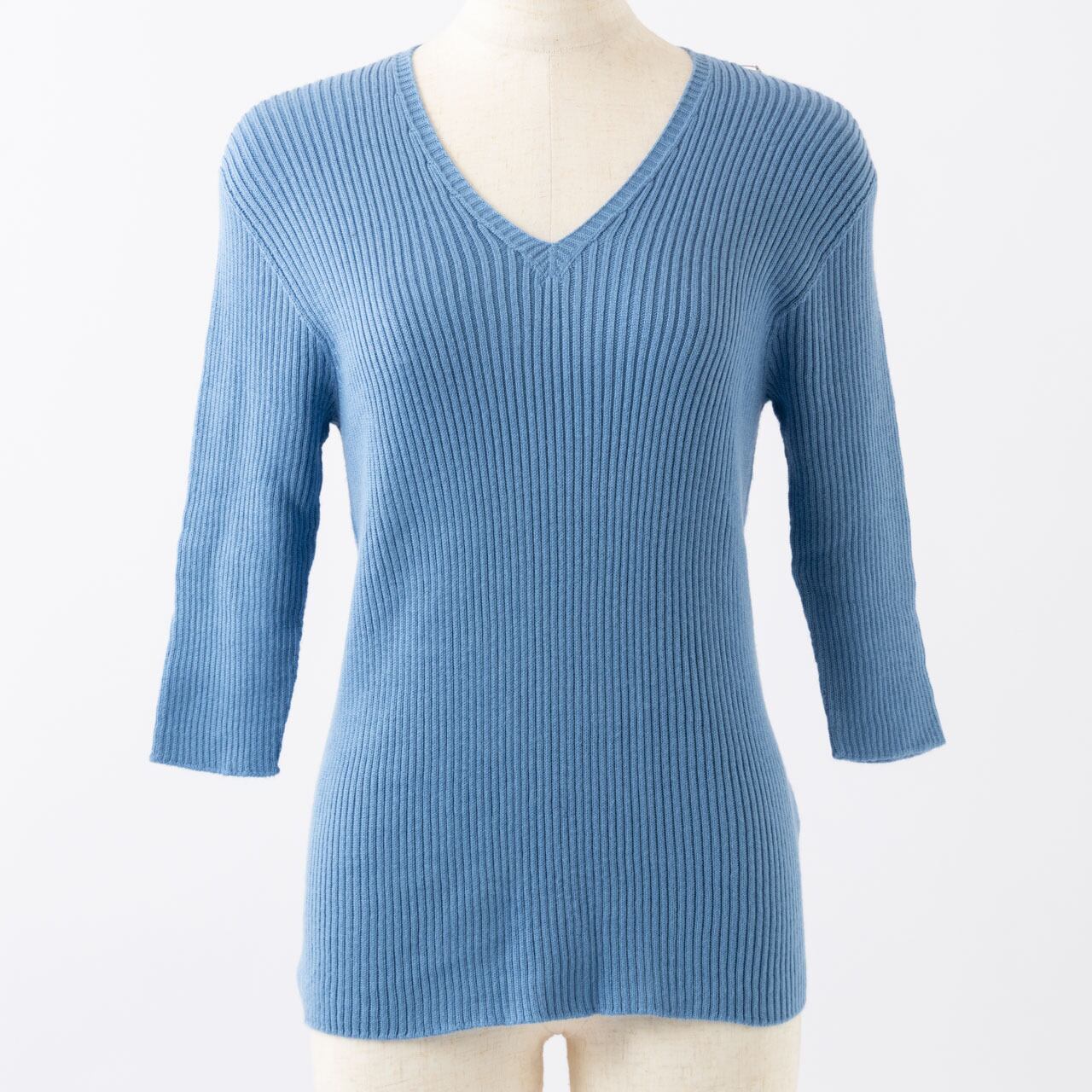 ゆったりな身巾のふわふわシルクVネックリブセーター5分袖。