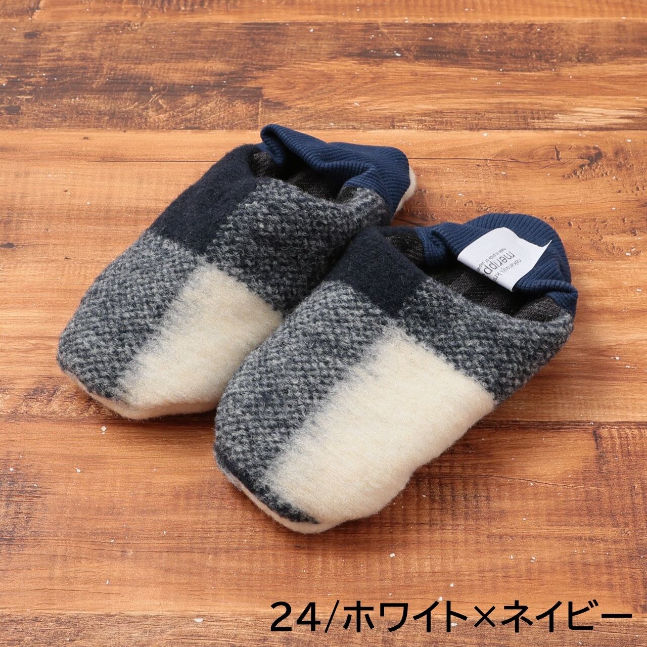 merippa メリッパ ルームシューズ スリッパ レディース メンズ ブロックチェック ストライプ リバーシブル 秋冬 暖かい 日本製 洗える かわいい おしゃれ ギフト プレゼント ブラウン ブルー ホワイト ネイビー 202308MRP22/23/24 Mp014