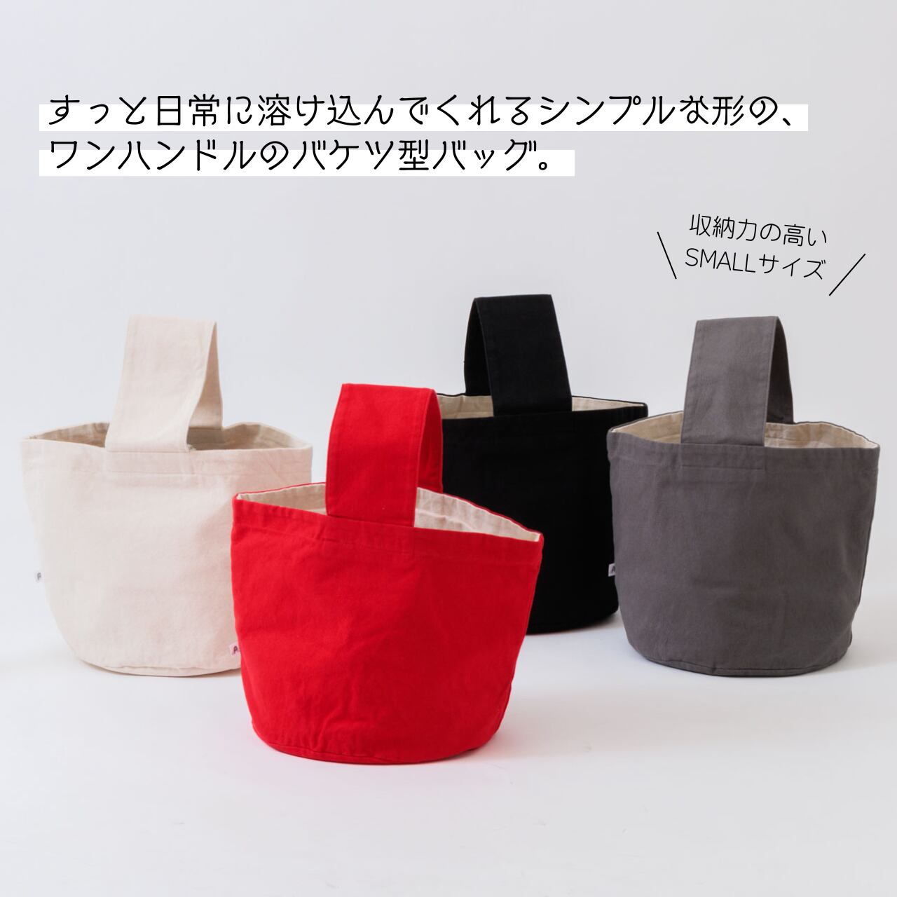 pouto バッグ ワンハンドルバッグ レディース 手持ちバッグ メンズ ワンハンドル トートバッグ 小さめ バケツ型 キャンバス おしゃれ 持ち手 布 綿100% かわいい 黒 ブラック レッド グレー ホワイト Sサイズ ポウト PO-001 Po001