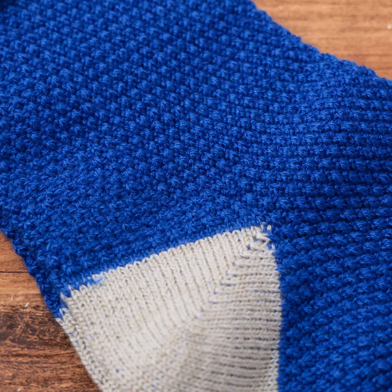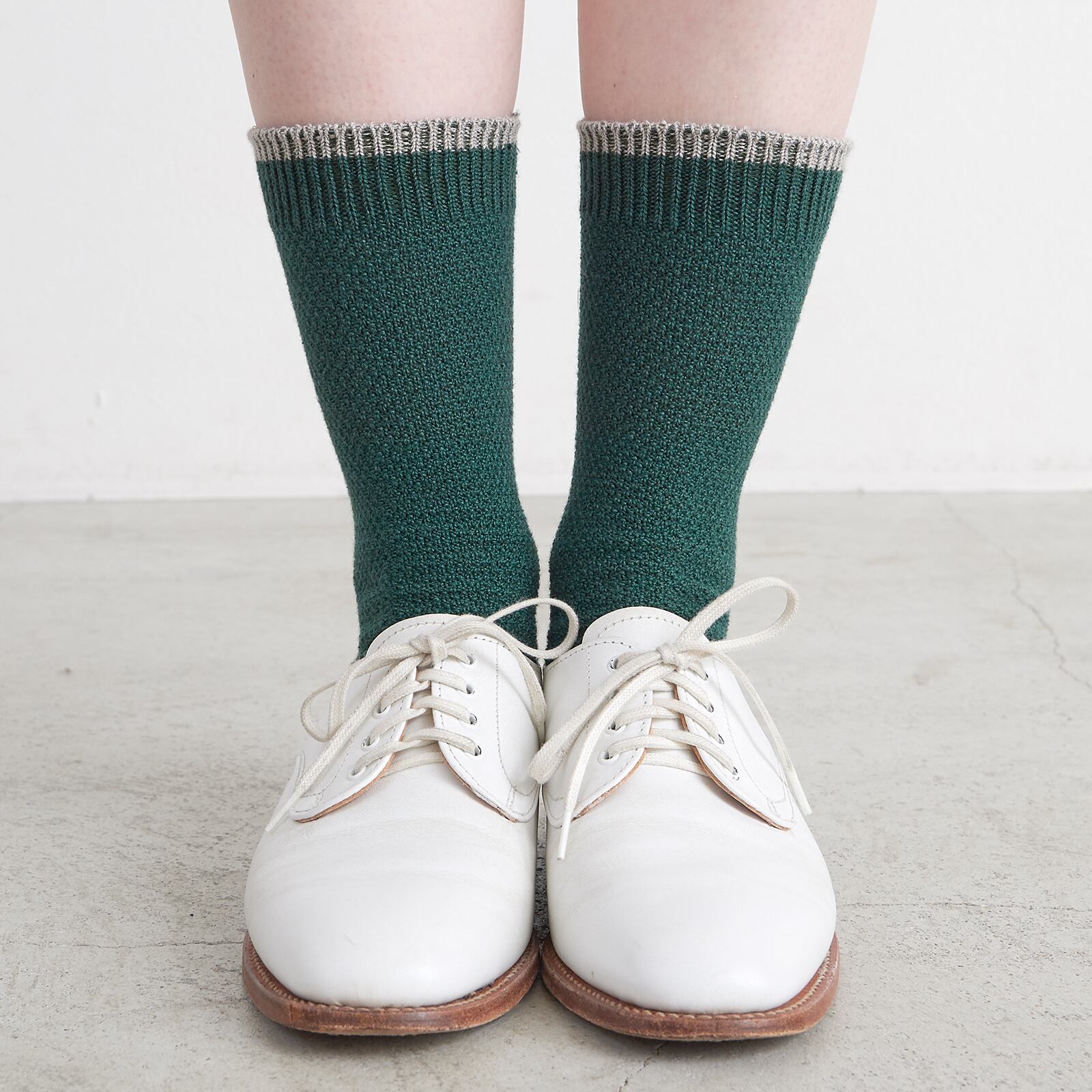 鹿の子編みにすることで蒸れにくく暖かなソックスに仕上げました。