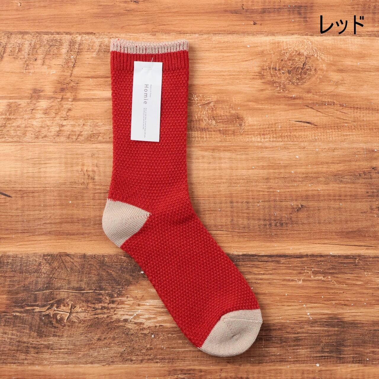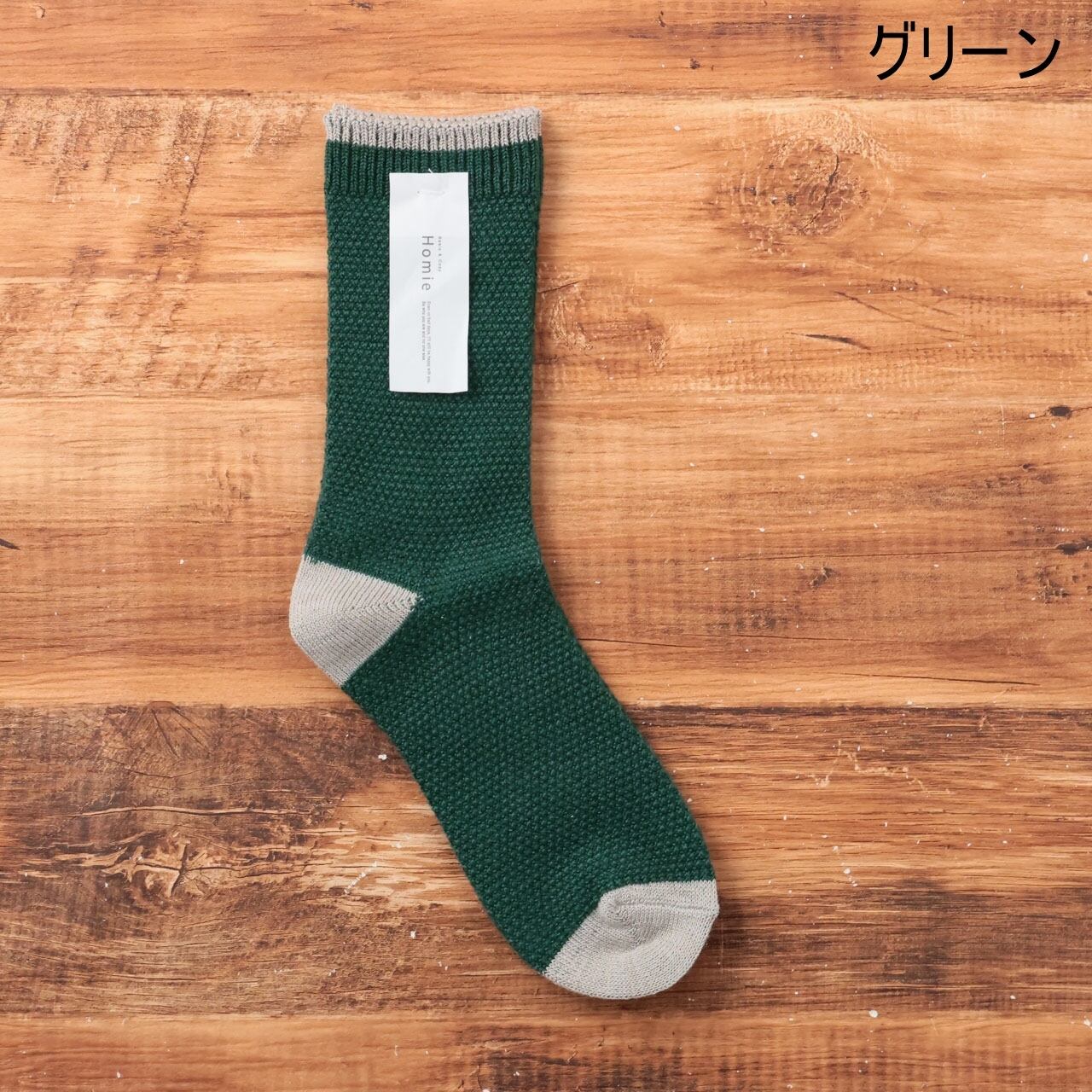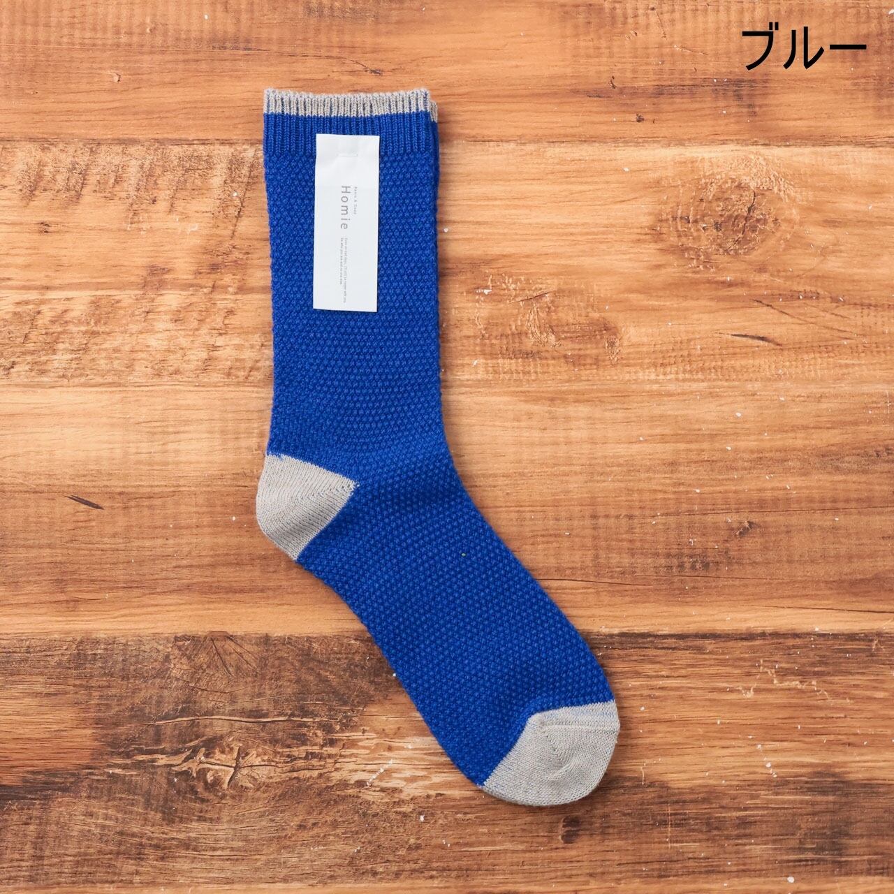 靴下 レディース おしゃれ 女性 暖かい もこもこ 冷え性 保温 蒸れない ソックス 秋冬 日本製 クルー丈 ウール コットン 綿 モスステッチソックス Homie ホミー 23-25cm H-079 Hm047