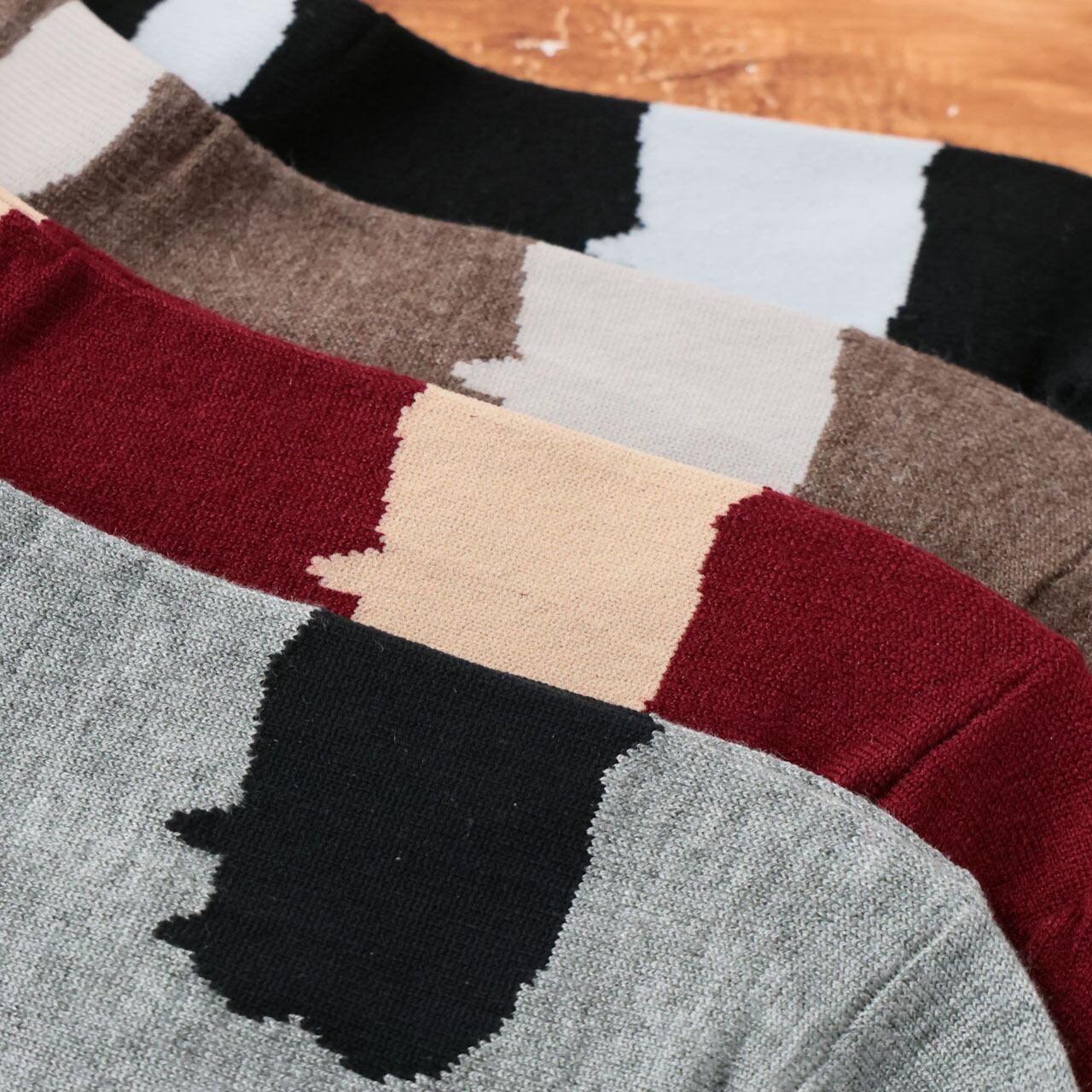 保温性に長けたアクリルウール糸でミドルゲージに編み立てました。