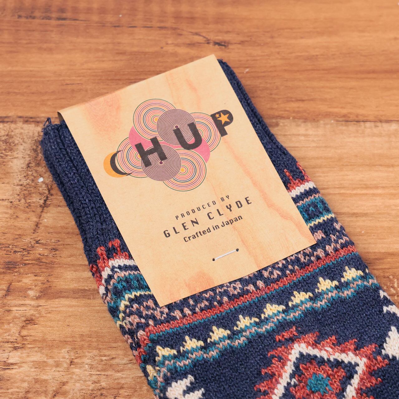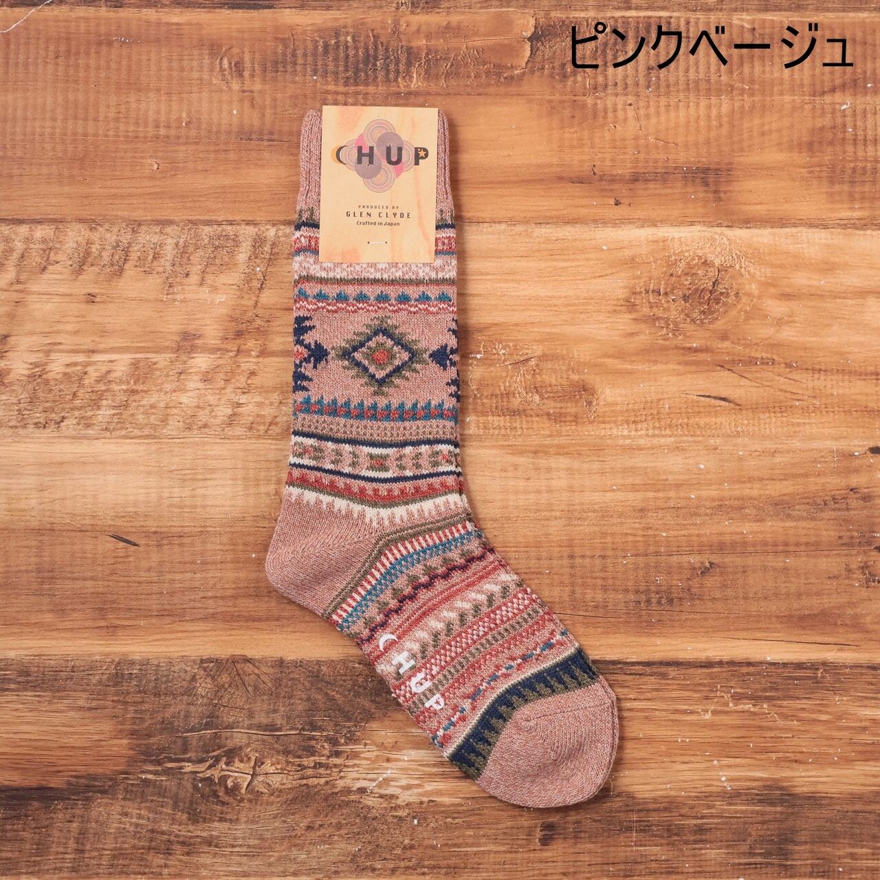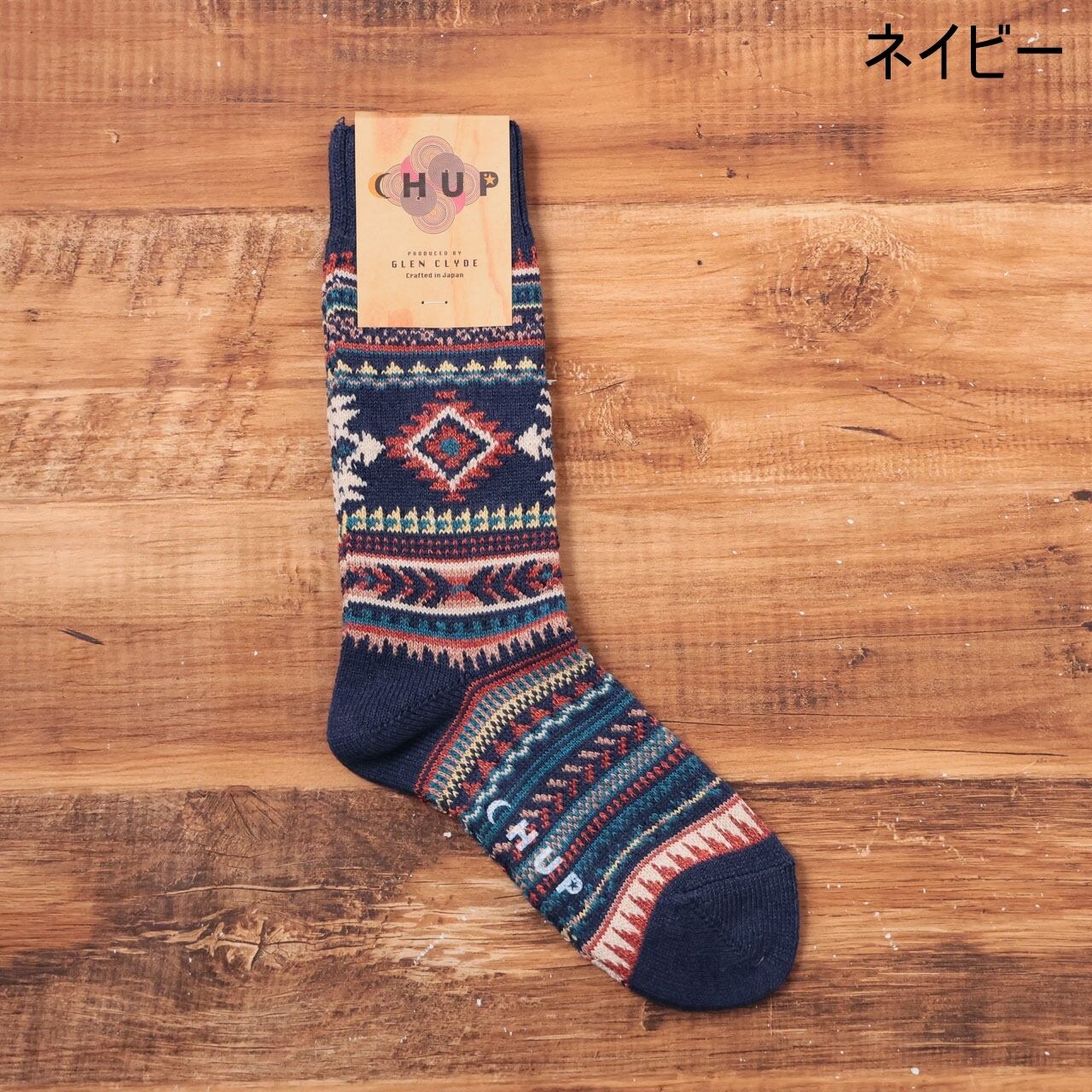 ハイソックス レディース メンズ 男子 柄 おしゃれ 秋 冬 暖かい 靴下 ブランド 中厚 かわいい 可愛い 綿 コットン 日本製 プレゼント S 23-25 M 25-27.5 GLEN CLYDE グレンクライド CHUP チュプ RED ROCK Ll123