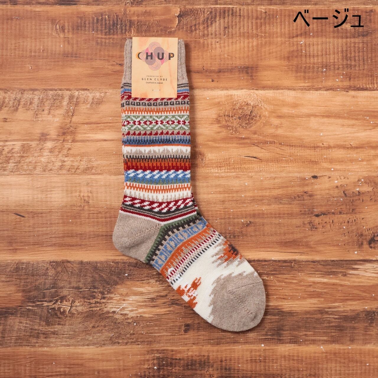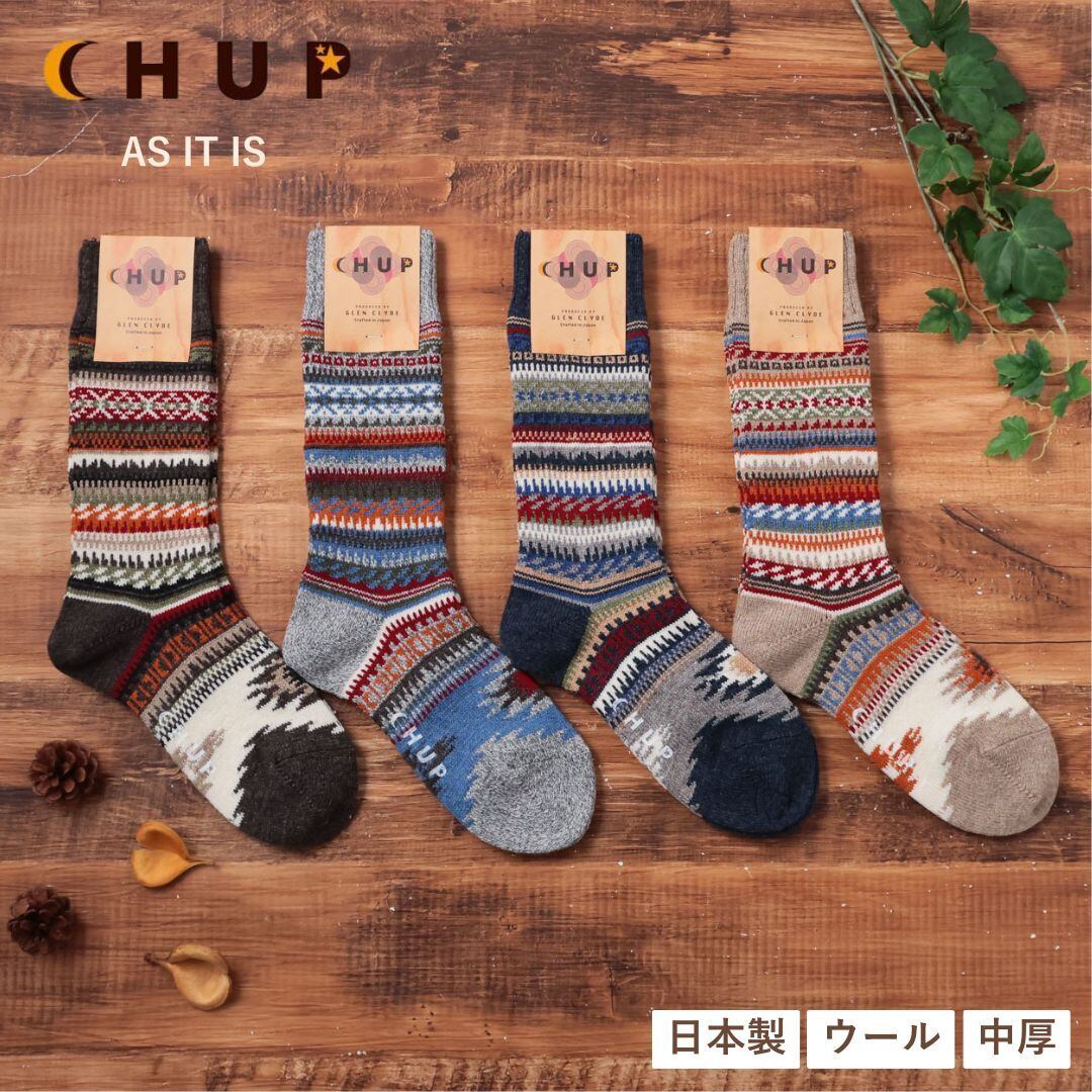 ハイソックス レディース メンズ 男子 柄 おしゃれ 秋 冬 暖かい 靴下 ブランド 中厚 かわいい 可愛い ウール 日本製 プレゼント S 23-25 M 25-27.5 GLEN CLYDE グレンクライド CHUP チュプ AS IT IS Ll124