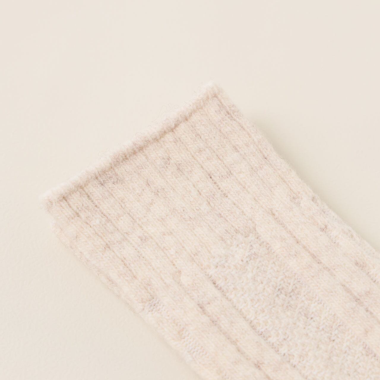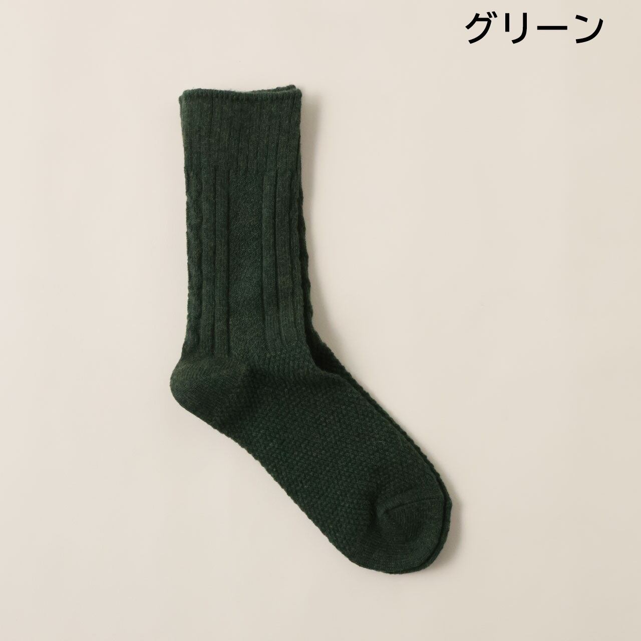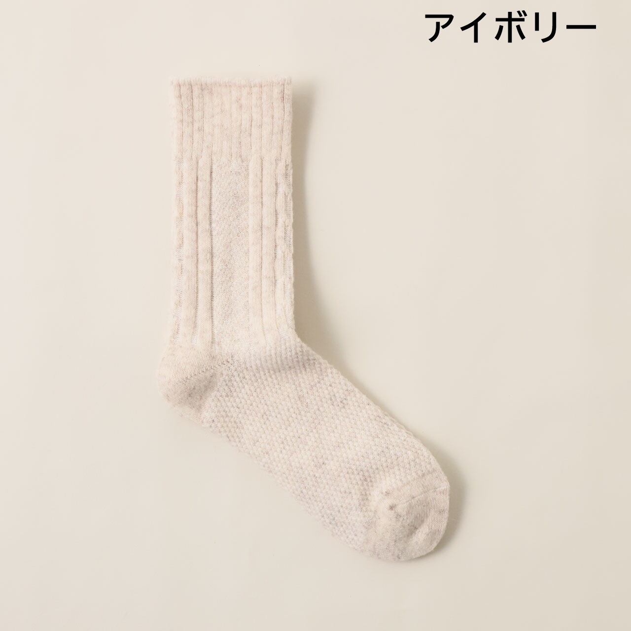 すっきりとしたリブ編みとぽこぽことした柄編みを切り替えたデザインが、足元のさりげないアクセントに。