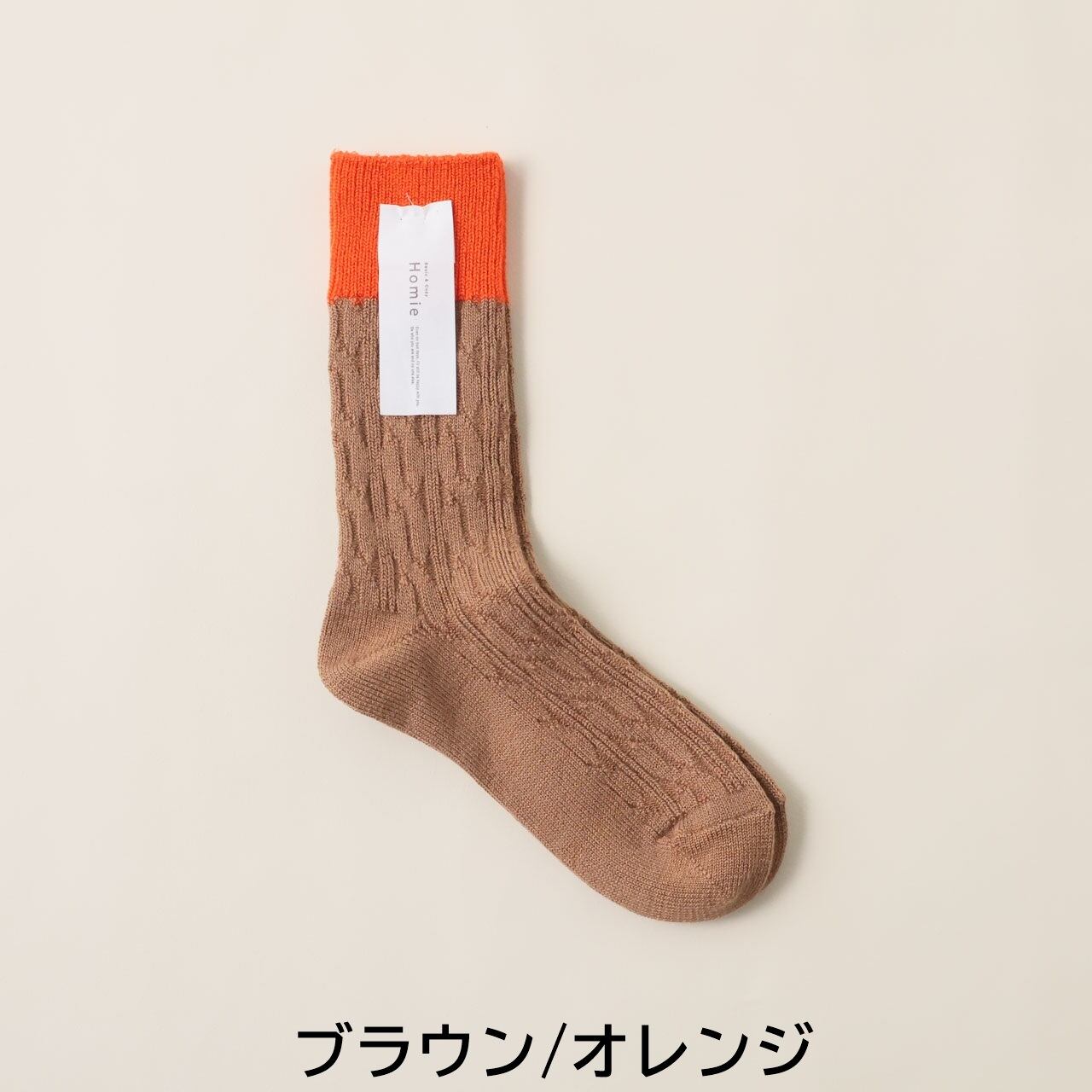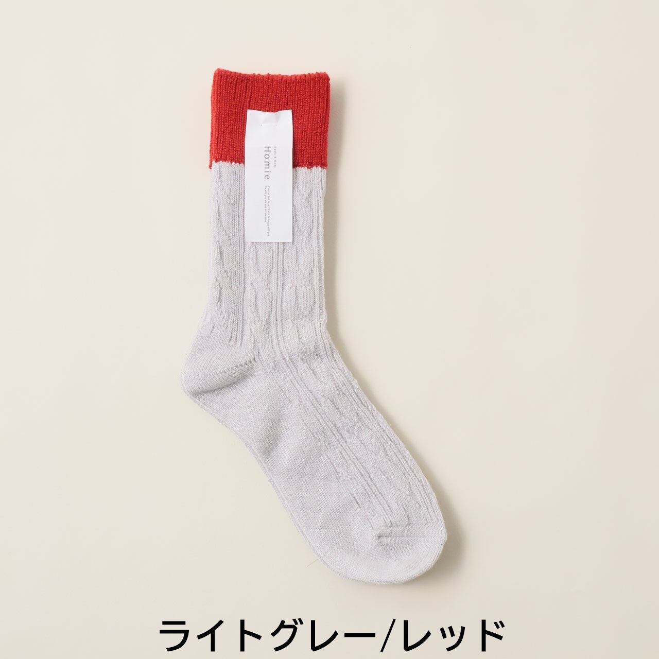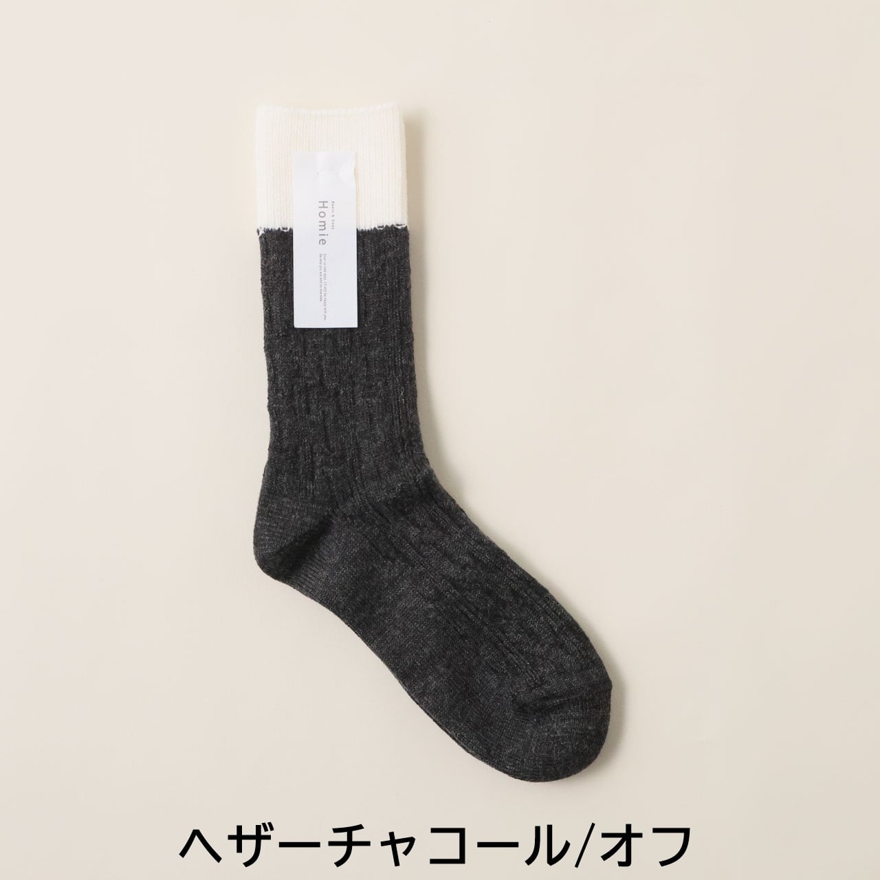 コットン ウール ケーブル バイカラー ソックス - H-083 -
