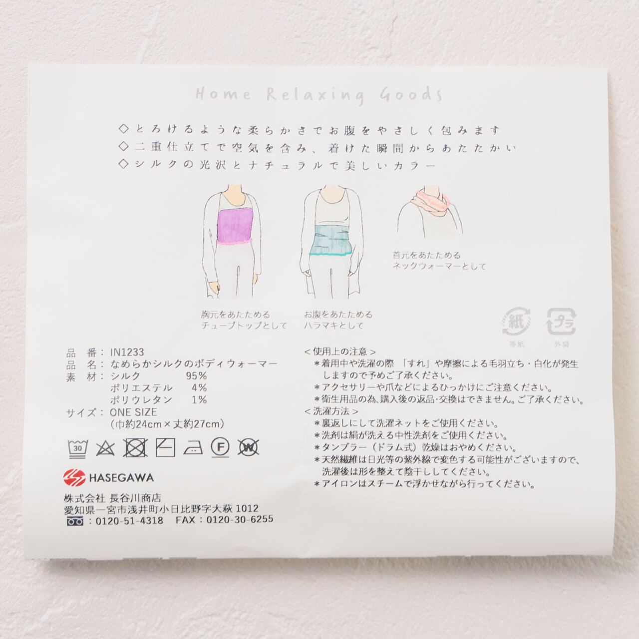 ボディーウォーマー 腹巻き はらまき レディース シルク 暖かい あったか なめらか 大きめ 薄手 やわらか ネックウォーマー 首巻き チューブトップ おしゃれ 防寒 保温 ブランド 日本製 長谷川商店 HASEGAWA IN1233 Hs025