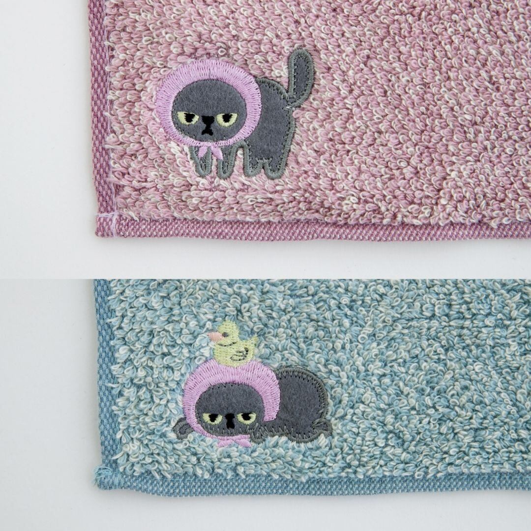 マチコさんが刺繍された、毎日使いやすいサイズのタオルハンカチ。